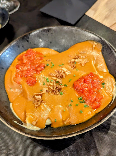 Respecto a la comida, no he visto la carta y he dejado que mis amigos pidan por mí. Probé el tartar de vaca madurado, era tierno y jugoso y venía bastante cantidad. De hecho es un plato que me suele gustar para maridar ciertas cervezas así que lo recomiendo. Sé que tienen baos pero ni idea, no los he probado. Me da la sensación de que si vienes de fuera, como yo, si vas buscando comida típica de la zona... este local parece que huye un poco de eso así que tenlo en cuenta en tu plan de turisteo local.