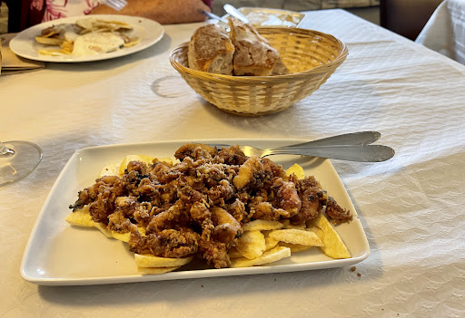 Rating this place very highly due to the kindness and service from our waitress. She was extremely patient and helpful with us even though we don't speak Spanish. She tried her best to translate the menu, and made sure we had a good experience here. The set menu consisted of potato salad or soup to start, then pork or fish for the main course. Big portions & home made. We had a drink, starter, main and coffee for €9. Very good value. Thanks to the waitress for...