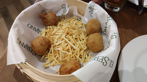 Le personnel avait aussi un bon humour, l'ambiance était très bonne, le service était aussi rapide qu'il pouvait l'être, tout était impeccable. Je reviendrai très certainement au Serrano lors de mon prochain voyage à A Coruña.