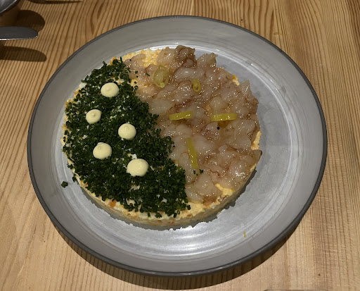 Os detallo lo que pedimos: _ Ensaladilla de Langostinos y su Tartar (10/10): ESPECTACULAR!!! _ Dos Brioche de Langostino en Tempura (10/10): Delicioso, los compartimos uno para cada dos y se nos quedó corto de lo sabroso que era, pero al final lo agradecimos... quedaba mucho por delante. _ Croquetas de Gamba Roja (10/10): ESPECTACULAR!!! Cuatro unidades deliciosas, en su punto y con una texturas y sabor top. _ Tortilla de Berberechos (9/10): Deliciosa combinación con sabor a mar y gran calidad del Berberecho. _ Tartar de Vaca Vieja (8/10): El sabor y la calidad de la vaca vieja, espectacular. La mezcla del tartar un poco floja, le faltaba un toque de sal y picante, pero entendimos que no querían "ocultar" a la vaca vieja. _ Tacos de Cacheira (10/10): ESPECTACULAR!!! Otro plato "sencillo", pero espectacular! Se te queda corto solo uno. ;) _ Pasta con Txangurro - fuera de carta (9/10): Pasta al dente con un sabor y "tropezones" abundantes. _ Tarta de Chocolate con queso azul (8/10): Muy buena y sin que el queso azul domine el plato... para nuestro gusto hubiese sido mejor servirla caliente y no del tiempo. _ Tarta Fea de Zanahoria (10/10): ESPECTACULAR!!! Cuando ves el plato ni te esperas lo que viene por delante. Muy bueno!!!