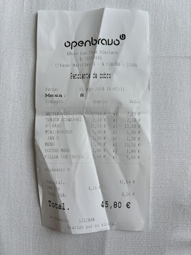Editó tras respuesta del propietario: De resaca, igual estabas tú. Yo acababa de llegar a A Coruña y fuimos directos a comer, nos dijisteis que sin problema pero que la cocina abría a la 1, entendible. Lo que no es entendible es que gente que llegó mucho más tarde, sea atendida antes que nosotros, cuando sabíais que habíamos pedido para comer. Os avisamos de buenas maneras al ver que se seguía atendiendo a gente q había entrado después y nos dijisteis que teníamos q tener paciencia. El problema fue cuando la pareja de al lado, con un bebé y seguro que dirás q de resaca también… se levantó para protestar por lo mismo, llevaban allí más de 1h y vieron cómo acababais de coger nota a la pareja que acababa de sentarse. Por otro lado la comanda se te dijo bien, 2 enteras de croca, 1 de raxo y media xe raxo… se trajo mal después de todo el tiempo esperando y solo se te dijo q no era así. Lo único que dijimos fue al pagar, porque también os equivocasteis con la cuenta, tú compañera te dio la de la 7 y te dijimos q no era, que era la 8 y nos dijiste de mala manera q no estabas con nosotros… hasta que tú compañera dijo, perdona, me equivoque te saque la que no era…. Con esto, nada que decir… yo también trabajo de cara al público y puede haber días mejores y peores, si me equivoco me disculpo, pero no me pongo por encima y a la defensiva en todo, sobre todo cuando no tengo razón. No te voy a llamar maleducada, porque creo que tú sola te has...