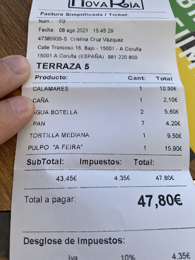Eramos 3 personas, el precio con 3 cañas y dos postres fue 37 euros….con lo bueno que estaba todo nos pareció muy barato. repetiremos...
