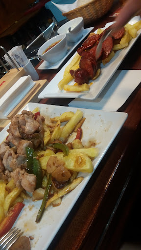 Read moreLa reserva había sido anticipada. Es un local con mucha demanda, por ello es mejor reservar. Destacar que el local es pequeño y el espacio en el que están dispuestas mesas y sillas bastante escaso. Te sientes enlatado. Si necesitas levantarte, has de movilizar a todos los comensales, si te ha tocado lejos del pasillo.Ese es el motivo por el cual le doy cuatro estrellas.Mientras esperábamos nos trajeron el pan y una salsas. Pedimos 3 de churrasco variado para todos, con patatas y 2 ensaladas: Una lechuga y tomate, y la otra completa. Decir que comimos hasta aburrir, y nos sobró. Con dos hubiese sido más que suficiente. (el sobrante nos lo llevamos a casa) No...
