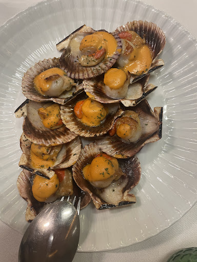 Read moreUna carta de pocos platos, cinco o seis por sección (entrantes, plato principal…). Precios elevados dadas las alternativas varias que se encuentran en Coruña. Por ejemplo, en los entrantes no hay nada de menos de 18€, salvo unas croquetas a 16. No son para compartir, unas sardinas ahumadas con guacamole, venían cortadas en cuadraditos y esparcidas por el plato con dos cucharaditas, tamaño postre de guacamole. Es un intento de nuvelle cuisine por las hojitas y decoración y algo de soja (¿?), pero en definitiva, un plato pobre en cantidad y caro a más de 18€. El segundo fue una desilusión: dónde como en Galicia para comer unos chipirones encebollados con arroz blanco…pero, los chipirones estaban casi incomibles de lo salados y el arroz pasado. En definitiva, con solo una copa de vino, una botella de agua, un solo entrante entre tres y sin postre: 100€. Lo que más puede dar mal sabor de boca a un comensal experimentado que ha frecuentado algunos de los los mejores restaurantes del mundo es que le traten como a un principiante, ya que una camarera muy amable y simpática nos explicó que “los chipirones son así de salados”. El tema no terminó allí, terminamos con gastroenteritis al rato de irnos del restaurante: no necesariamente atribuible al restaurante, a pesar de la correlación. Es un sitio acogedor que tiene una decoración singular entre tradicional, muro de piedra, y moderna, muro de listones de madera con movimiento ondulante que esconde la entrada a la cocina, la pena es la comida y la pretensión de no dar alternativa a platos caros sin la calidad que demandan esos precios en un mercado muy competitivo y que ofrece más variedad, buena cocina y mejores precios. Sin duda, estos son los puntos de mejora para Pablo Gallego. El “envoltorio” es bonito y la ubicación buena, pero lo importante en un restaurante...