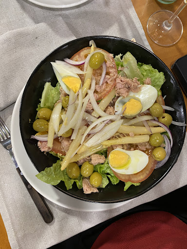 Read moreExcelente parrillada localizada en la Calle Álvaro Cebreiro (perpendicular a la Calle Real) de A Coruña. Es un local con unos productos excelentes a un precio razonable. Las carnes son de calidad, están muy sabrosas y en su punto. Mención especial merece el churrasco (tanto el mixto como el de cerdo) que está impresionante, ya que está elaborado a la parrilla con madera, que le da un toque muy sabroso. Las guarniciones son muy buenas y abundantes: las patatas son frescas y hechas al momento. El trato es muy amable y los camareros son muy atentos. El precio medio por comensal es de alrededor de 20€, lo que es una buena relación calidad-precio teniendo en cuenta la buena cantidad de las raciones. Nosotros éramos 4 personas y pagamos 81,90€, pidiendo: 2 raciones de churrasco mixto con ensalada y patatas fritas 2 raciones de churrasco de cerdo con ensalada y patatas fritas 3 raciones de tarta de galleta con caramelo 2 canestillas de pan 2 Estrella Galicia 0,0 2 claras de limón 1 Aquarius de limón 1 botella grande de agua 2...