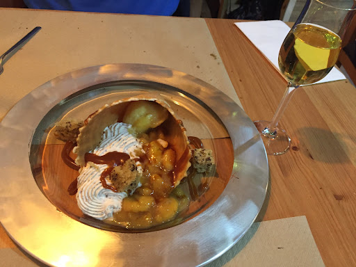 Jarrete (excesivo sabor a menta y especias que maquillaban todo el sabor de la carne). Pluma ibérica (tuvo un pase pero la cantidad ínfima). Postre pistacho (en la foto) la presentación no invitaba ya a comerselo. Postre 2 literalmente pusieron un trozo de helado (sabor mal conseguido) y un trozo de miel dura así a palo seco no había quien lo comiera. En cuanto al local, el espacio es muy, muy pequeño y los baños son cutres, es decir los precios no van en sintonía con los que te encuentras. En conclusión, nada de lo que ofrecen en este lugar es interesante, ni siquiera complaciente y sobre todo con los precios que tienen. Es una pena porque fuimos con ilusión y salimos con la i tocón de no recomendárselo a nadie. Señor/ señora dueño/a del local y/o grupo Peculiar. Antes de enfadarse y pensar que esta crítica va a mala fe, no. Me encanta la hostelería y gastronomía gallega y soy una amante de probar comidas y lugares nuevos. Pero basta ya de tomarle el pelo a la gente. Autocrítica y cambios, lo mejor, el vino. Pd. El personal fue advertido de esta mala experiencia...