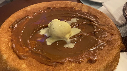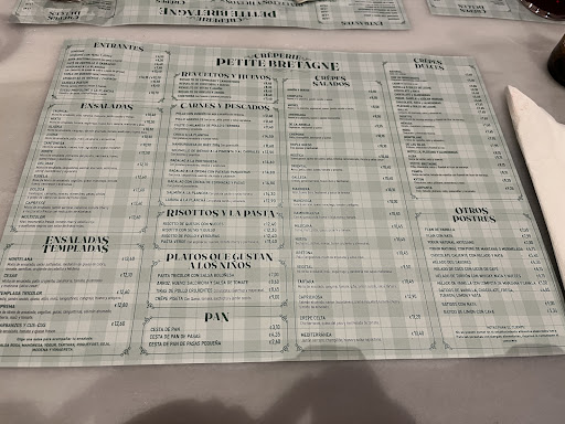 Read moreLa Creperie (Petit Bretagne) es uno de los restaurantes de la ciudad de la Coruña con más tradición, lleva muchísimos años abierto y en sus día tuvieron varios locales. En la actualidad es un restaurante basado en crepes, aunque con una carta muy amplia en la que también tienen ensaladas, carnes y pescados, además de un buen número de entrantes. Ahora bien, la imagen que tenía de ellos ya no es la misma. Fuimos a cenar 5 personas, con mesa para las 22. Compartimos varios entrantes (croquetas de ibéricos, media tabla de quesos y ensalada templada), un crepe por cabeza y un par de postres para compartir. De beber, jarra y media de sangría de vino. Sinceramente, nada destacable. Lo que compartimos, sin más. Quesos no excesivamente sabrosos (y que estaría bien saber cuáles son), croquetas normalitas y ensalada de pasta que sí nos gustó. De las crepes, gustaron Celta y Mediterránea, el Oriental, supuestamente con pisto y picante, no sabía a nada y del pollo se hacía bola al comerlo, muy seco. La crepe Nueva, con unas láminas de bacon de 1 cm de grosor, se hace muy pesada. De los dos postres gustó mucho la crepe Pampa, con un delicioso dulce de leche y un vistoso flambeado que le da un toque muy rico junto con el helado de vainilla. Precio, con 4 cafés, casi 125€, alrededor de 25 por cabeza. Bajo mi punto de vista ha perdido calidad y el servicio tampoco ayuda mucho. La persona que nos atendió fue maja, pero su compañera fue extremadamente seca sirviendo, un poco maleducada no queriendo dejar entrar a dos comensales que habían ido a fumar, y entre todos nos hicieron sentir incómodos al recoger a toda pastilla cuando no eran ni las 12. Entiendo que haya que irse para casa, la conciliación es fundamental, pero dos horas para cenar tampoco me parece un tiempo excesivo, metiéndonos prisa para que pidiésemos desde las 23:20 porque iba a...