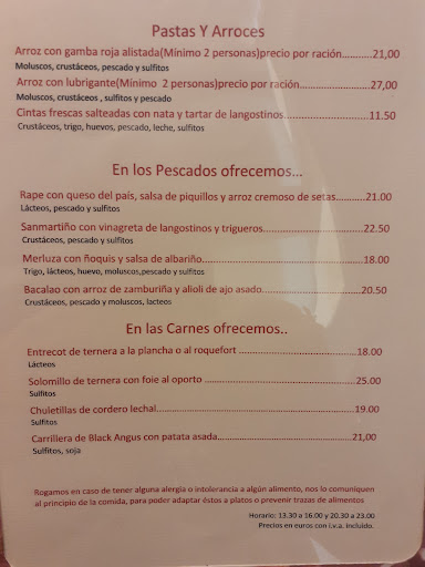 Lamento dejar esta reseña, pero tengo que ser honesta. Comimos unas croquetas de marisco, ricas, bastante buenas. A partir de aquí... Las cestas de zamburiñas en salsa de nécora, aunque abundante, porque era más grande de lo que esperábamos, la mayoría era cebolla y una escasa salsa de nécoras, un plato fallido en parte también por cómo lo venden, el nombre debería ser algo como "cestita de zamburiñas con cebolla y aliño de salsa de nécora", por decir algo más adecuado a lo que comimos. No estaba mal, pero no era lo esperado. Tras estos entrantes, el desastre con las carnes. El solomillo sequísimo ,no se pudo comer. La Costilla de Angus, no es Costilla de Angus como tal, es un lingote de carne deshuesada, no me voy a meter en si es de Angus o no, pero con lo jugosa que es esa carne (la hemos comido muchísimas veces) no tenía nada que ver, se hacía seca. No obstante, no puedes poner Costilla de Angus en la carta,y recibir un lingote de carne prensada. Las costillas de cordero...sin palabras, según me dijeron es que las maridaban en algo, y de ahí ese sabor que tufaba, no las pude terminar. Nunca he pedido costillas de cordero en un restaurante y han aparecido maridadas en nada, es un producto que no lo necesita, pero si lo hacen, que se indique en la carta y cada uno decida si lo quiere. El postre de leche frita, muy rico. Todo esto, porsupuesto lo transmití al camarero, con el mismo respeto que lo estoy escribiendo, su respuesta y atención fue muy amable. El servicio fantástico, de hecho, muy comprensivos y atentos, Y eso también es muy importante. No nos cobraron al menos el entrecot, fue un detalle lógico, pero hay que agradecerlo, fueron justos. De aquí salen las 3 estrellas, habría puesto 2 de ser solo por la comida (gracias a las croquetas y el postre). La pena es que en este caso, el principal objetivo de ir a un restaurante es la comida, y de 3 segundos ninguno acertado por una u otra cosa...es demasiado. No escribo normalmente reseñas así, me encanta dar 5, pero creo que es necesario compartir también lo negativo. Ojalá todo sirva para seguir mejorando y deseo que esto haya sido...