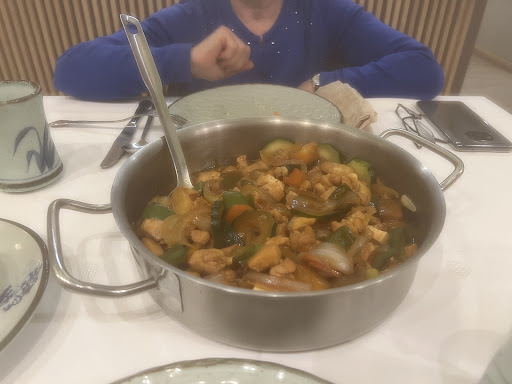 We have eaten in the best Chinese restaurants around the world, so we had to see one in A Coruña with 4,6 out of 5 with 2500 reviews. We were having a Sunday lunch and ordered as the first course a shark fin soup each, with prawn crackers as a side dish. For the 2nd course we ordered Peking Duck (always a dish with which you can judge a Chinese restaurant). One minute after the hot soup arrived, the peking duck was also served. I explained that I would prefer to finish my first course as we had ordered a bottle of wine as well. They took it away and when we finished the soup they brought back the Peking duck. This dish is normally prepared with the skin roasted to crispy and served with spring onion, cucumbers, and pancakes. This duck breast was a maximum of 5mm thick, coated in something and deep fried. The plum sauce, insipid and the pancakes freezing cold and stuck to each other like glue. No cucumbers. The whole dish had no flavour. Unfortunately, I didn’t take photos, mainly because I was so upset with the way we were being rushed and the lack of knowledge of how a restaurant should work. The icing on the cake was when we offered to give the waitress a 10% tip and she said that no tips were allowed but we had to give a good review on the card that was given with a QR code png. At that moment I realised the ratings. It’s a well decorated restaurant with nice staff, but best to just order noodles or rice. One wonders how...