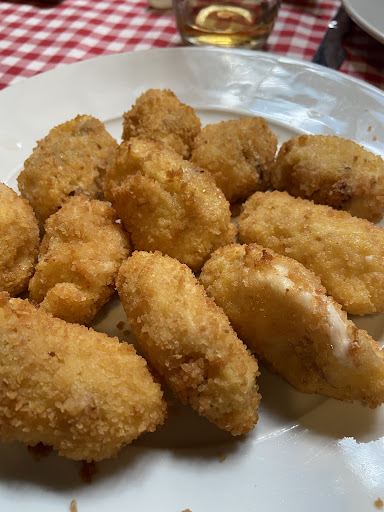 Read moreLa escasa variedad de platos que tienen y la limpieza son lo peor del restaurante. Las croquetas de las mejores que he probado, el raxo buen sabor pero demasiado aceitoso, la crema de limón de postre está buena. Tiene 6 o 7 entrantes y otros tantos segundos, de los cuales la variedad es muy escasa, de los segundos nos dijeron que no tenían dos a las nueve y media de la noche de un Sábado, así pues después de mirar la carta diez veces no sabíamos ni que cenar. La limpieza bastante pobre, los manteles descoloridos y de aspecto poco limpios, también agujereados de colillas. El cocinero trae los platos al comedor y tampoco da sensación de mucha limpieza. Trabajando más en éste aspecto y ampliando un poco la carta podrían ser de lo mejor de Coruña, pues lo que cenamos...