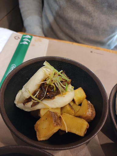 Read moreHace un año, me hablaron muy bien de este sitio, me esperaba algo totalmente diferente a lo que me encontré. No hay por donde cogerlo. Comimos entre otras cosas "gyozas" Que, entendiendo la premisa de cocina fusión y lejos de criticar el sabor del relleno, era como comer pan. La parte superior de la gyoza estaba dura por completo, rozando lo quemado. Pedimos también "kimchi ramen", nos avisaron de que no quedaba carne de ningún tipo para añadir a los otros platos (siendo las diez de la noche). Por donde empezar, los fideos estaban duros y sabían a los típicos fideos instantáneos de Maggi. La col china no era tal, era repollo del que le echas al caldo gallego, y, el sabor de la sopa era patético, ni kimchi ni nada, parecía como si le hubiesen echado un sobre de saborizante de fideos instantáneos. Además de que me lo sirvieron casi frío. Todo esto seguramente lo habría pasado por alto y no me hubiese molestado en venir aquí a dejar una mala valoración si no fuese porque la persona que vino a la mesa cuando terminamos se puso a preguntar en plan mal, que si no nos había gustado (porque lo dejamos casi todo) y oye, si me preguntas mi opinión te la voy a dar, con educación siempre. "Es que ya pone que es con repollo en la carta" "No te gusta el kimchi entonces" "Siempre hay una primera vez y una última". Pues si querido, por suerte no tendré que volver a comer tu comida "fusion" ni soportar tu pésima atención al cliente. Un poquito más de asumir los...