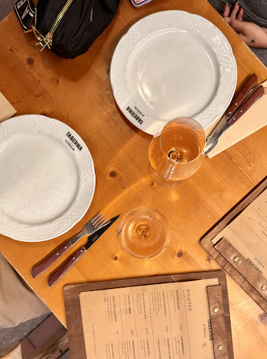 Nada más llegar, me encantó el detalle de tener una cubitera en la entrada con vinos de temporada fríos 🍾. Puro ambiente, muy estilo Sevilla —poder escoger tu propio vino antes de cenar sin depender de la carta fue un puntazo y marcó el tono de la noche desde el principio.