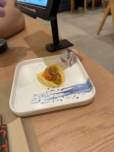 Está ubicado en un centro comercial con variedad de alternativas de ocio y compras, fácil aparcamiento y acepta pagos en metálico y tarjetas. Se puede hacer la reserva online, por teléfono e incluso en el mostrador del restaurante. Al llegar validaron nuestra reserva y nos escoltaron amablemente hasta la mesa, el camarero nos indicó el funcionamiento de la tablet de pedidos y nos guió para hacer el pedido de bebidas inmediatamente para que llegasen antes de la comida (así nos daba tiempo a pensarlo). Fuimos para la cena y el menú ya incluye toda la carta sin necesidad de pagar suplementos por platos especiales como el Sashimi por ejemplo en el menú de mediodía. El sushi está bastante bien, las presentaciones son básicas (mejorables para quienes nos gustan más vistosas) y las porciones son pequeñas por lo que es poco probable que pagues el suplemento de 2€ por dejar un plato. El Sashimi mixto está muy bien logrado incluso lleva dos carabineros incluidos, una apuesta arriesgada que le dan un puntazo al plato. Probamos algunas alternativas fritas y muy bien, frescas y de buena calidad, también las gyozas, el bao y otras al vapor. El tempura está insuperable, los vegetales en su punto y nada grasosos. Pero la estrella de la noche fue el Wok de Gambas picantes, presentado exquisitamente sobre un pequeño fuego para mantenerse mientras lo comes. Eché de menos un buen padthai con gambas /pollo porque todas las versiones de tallarines de la carta eran solo de vegetales. Pedimos el cerdo agridulce y estaba muy bien, no traía piña y los vegetales típicos que lo acompañan pero la salsa estaba bien de sabor y el cerdo en su punto frito crujiente. El tataki que ofrecen es de carne, estaría bien incluir alguna opción de pescado. El roll de plátano y macedonia de frutas muy bien, sería interesante probar la variedad tempurizada, en la que seguramente se mantendría el plátano en su sitio al momento de pillar el roll. El tartar estaba impecable, solo le faltaba un toque de vistosidad o color al plato ya que el de atún con los fideos crunch de toppping queda muy soso, quizás algo de aguacate? En fin toda una experiencia, llegamos pasadas las 20 hrs y los platos pedidos de 5 en 5 fueron llegando con bastante frecuencia, la ubicación de la tablet en un lateral de la mesa resulta incómoda cuando hay varios comensales y tienen q pasar por encima para pedir o visualizar la carta.. quizás poner un QR en el centro de la mesa con la carta ayudaría a la hora de hacer la selección y ya luego solo dictarle al “apuntador designado” . Tienen una salita “privada” con capacidad de unas 30/40 personas aprox en varias mesas redondas de 5,7 y 8 comensales cada una. El pago se realiza en la caja a la salida indicando el número de mesa, se toman la molestia de preguntar por la experiencia y si hay alguna sugerencia para mejorar. (increíble!!) lo que me parece muy bien. Tocará volver para comprobar la evolución con las sugerencias y los platos calientes, quizás incluir una ensalada Neptuno Las bebidas no están incluidas en el menú infinito y tienen precio medio de 2,9€ y bastante variedad. Los postres tampoco están incluidos y solo vi variedad de Mochis, por lo que no los probamos (las fotos no venden, si no entra por lo...