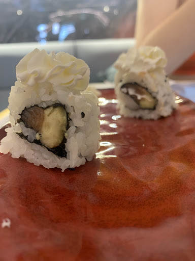 Los rollos de sushi están malísimos, uno en particular (el de la foto), que tenía salmón, queso crema y aguacate sabía horrible. El aguacate se notaba como si estuviera refrigerado de mucho tiempo y oxidado, así que mejor preferimos dejarlo ahí y pagar los 2 euros de penalización a comernos eso.