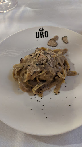Read moreVisitar "URO" no es simplemente ir a cenar, es embarcarse en una travesía sensorial que redefine lo que significa disfrutar de una comida. Desde el momento en que cruzas el umbral, te envuelves en un ambiente que equilibra a la perfección el lujo con la calidez, donde cada detalle ha sido meticulosamente diseñado para hacerte sentir como el invitado más importante del universo. El menú es un poema gastronómico, una oda a la creatividad y al arte culinario. Cada plato es una obra maestra, presentando ingredientes frescos y locales en combinaciones inesperadas pero sublimes. Tomé el Tagliatelle fresco con crema de setas, el tartar de atún y el steak tartar y cada platillo superaba al anterior. Desde el tartar de atun, un pequeño bocado celestial de atún cuyo frescor era como si hubiera sido sacrificado al momento , hasta el postre final, una tarta de queso que se deshace mágicamente en la boca, la experiencia fue inigualable. El maridaje de vinos, era la compañía perfecta para cada plato, elevando los sabores aun más si cabe. Pero lo que realmente hace que "URO" se destaque es el servicio: discreto, atento y profundamente conocedor. Cada miembro del personal parece anticipar tus deseos antes de que siquiera los formules, pero sin ser intrusivo. El chef, un verdadero genio de la cocina, un artista de sabores, un poeta cuyos versos se plasman en sus platos. Su pasión por la gastronomía es evidente en cada especie, en cada ingrediente , y sobre todo, en cada plato que envía desde su cocina. He tenido la suerte de cenar en algunos de los restaurantes más reconocidos del mundo, pero "URO" se lleva el premio mayor. Es un lugar donde la tierra se encuentra con el cielo y aunque pueda parecer exagerado cada comida se convierte en un recuerdo imborrable. Si pudiera darle más de cinco estrellas, lo haría sin dudar. Este restaurante no solo redefine la cocina; redefine la experiencia humana. "URO" es, sin duda alguna, el mejor restaurante que he tenido el privilegio de visitar, y merece ser recordado en los anales de la historia como tal. ...