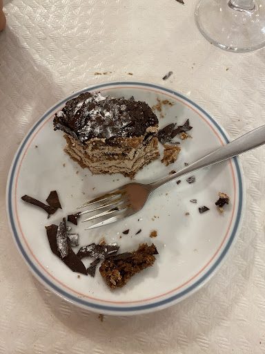 Sin embargo, la verdadera estrella de la noche fue la tarta que probé de postre. Era una verdadera obra maestra de la repostería. Cada capa era suave, rica y llena de sabor. No pude resistirme a saborear cada bocado, y la presentación era impecable.