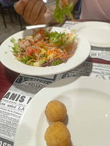 Read moreFuimos a tomar algo con intención de cenar después y al pedir unas cañas estuvimos esperando a ver si nos ponían un pincho ya que le ponían callos y tortilla al resto de las mesas, pues nada allí quedamos sin pincho, eso sí el camarero en la esquina de la barra con su móvil y de espaldas a las mesas eso es todo un profesional de la hostelería 💪👍 decir que había un par de mesas que tampoco les puso nada. Me pareció tan mal que nos levantamos y fuimos a cenar...