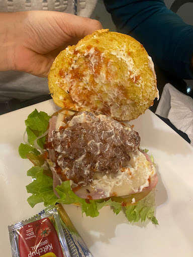 Horrible el peor sitio donde e comido y no lo digo por la comida que estaba rica si no por el trato recibido de la camarera ya para pedirle de comer fue un suplicio solo ponía mala cara,a mi sobrino pequeño se le cayó el acuarius encima y estando ella delante ni limpio la bebida ni nos ofreció ni siquiera una simple bayeta tuve que limpiarlo con servilletas después en el pedido de mi hamburguesa en cocina se equivocaron y pusieron mis ingredientes en la del niño pequeño y me dijo bueno te los voy a añadir pero bueno...como si me estuviera haciendo un favor a mi de un fallo de ellos muy desagradable la camarera para no volver nunca y si alguien está leyendo esto porfavor que no vaya...soy camarera de profesión puedo entender mejor que nadie un momento de apuro o de agobio pero en este caso el bar que es grande tenía solamente dos o tres mesas pero ya según entras te pone mala cara horrible no volveré jamás y si el propietario del local está leyendo esto y quiere que su negocio prospere le recomiendo encarecidamente que cambie el...