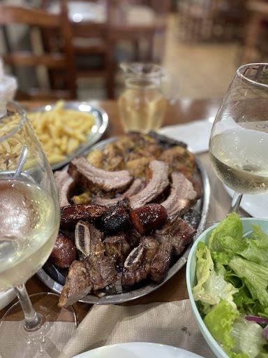 Read moreEspectacular, dos compañeros hemos comido menú de churrasco, la carne tanto de ternera, como de cerdo, como de pollo buenísima acompañada de chorizos criollos y normales, todo en una fuente que no tenía fin, a parte patatas fritas, ensalada, bebida(dos cañas en copa grande ) postre casero y cafés (invitados por la casa ) 17€ persona.
