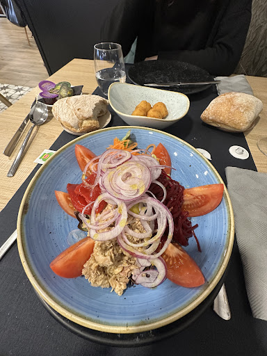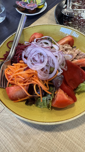 Comedor muy agradable y nuevo, con gusto decorado y buen ambiente, baños limpios, nuevos y amplios, el servicio lo justo, sin más, pedimos menú del día para comer, estamos en Galicia es raro comer mal, de primero lacón, quedamos con la boca abierta al verlo, sin patata cocida, unas lonchas en forma de abanico de jamón cocido de 2 mm cortado a máquina con un poco de pimentón y AOVE por encima, increíble, de segundo carrilleras con arroz de guarnición, más bien durillo, las carrileras nunca las había comida que hubiese que cortarlas con cuchillo porque estaban duras, cocinadas parecía que en horno y arrimadas posteriormente a una salsa poco agraciada, mi mujer pidio pollo frito, de como se puede ver en la foto con un rebozado exterior tipo KFC, y patatas fritas congeladas de bolsa de guarnición. De postres tarta industrial y fioa que lo mejor era su relleno de nata de spray. Total 28 € dos personas. Según las reseñas leídas previamente este lugar contaba con buenos platos pero éstos se ve los reservan...