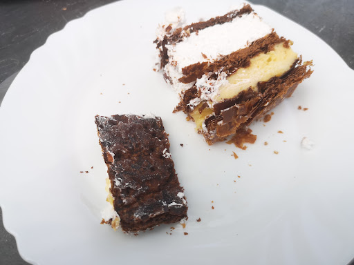 Read moreEncargamos una tarta, cuando llegamos a casa y la abrimos tenía muy buena presencia por fuera pero cuando la partimos estaba el hojaldre totalmente quemado, chamuscado. Si se os quema cuando fui a buscarla teníais que haberlo dicho y llevaba pasteles u otra cosa pero esa tarta no era para vender a nadie, con estas cosas ganasteis esa venta pero perdéis todas las futuras ventas a mi y a todos los que estábamos en esa mesa. Para no volver ni aconsejar a nadie. (Por las fotos podría parecer tarta de chocolate negro, pero no, es...