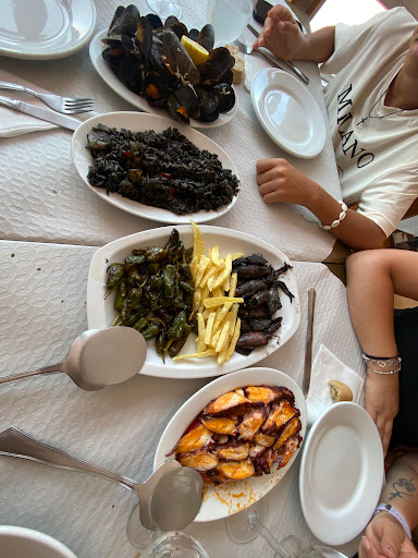 Llamemos a este establecimiento reservando mesa. La persona que nos atendió nos informó que tenía mesas en el exterior, pero a la hora de la comida era mejor estar en el interior por la posición del sol, tanque daría directamente sobre las mesas del exterior. Cuando lleguemos, nos indicó que el salón que está en el piso superior era más tranquilo y que podríamos estar en mejor ambiente para la comida. Hay que reconocer que no tiene nada que ver el piso inferior al superior. Quisimos probar la gastronomía propia del lugar, así que dentro de las opciones que nos ofrecía la carta elegimos el pulpo a la illa, luriñas con pimientos de padrón (chipirones en su tinta acompañado de pimientos de padrón y patatas), mejillones al vapor y un arroz de choco (arroz negro con sepia). Todo acompañado de un Albariño fresquito. Para una familia de 4 que somos, estuvo muy bien. Habíamos pensado en complementarlo con una tapa de cazón, pero la cocinera (Mercedes), nos aconsejó que primero acabaramos lo que habíamos pedido de marisco y si luego teníamos más hambre, nos ponía el cazón. No hizo falta poner el cazón 😮💨. De postre recomiendo uno de los postres caseros de Mercedes, especialmente trt de queso o puding. Lo negativo es que no cobran con tarjeta, pero aceptan la forma de pago mediante BIZUM. Amabilidad y buen servicio por parte del servicio, y la cocinera, Mercedes, simpatyy graciosa, te aconseja bien en relación a las cantidades que vas pidiendo. Un buen lugar para ir a comer gastronomía propia de la zona, aunque sea un poco pequeño y alejado...