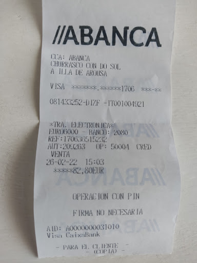 Read moreUn sitio muy agradable en la illa de arosa muy cerca de un parque matural, llamamos y tenían sitio toca reservar para asegurar mesa, comimos 4 personas, la camarera muy amable y servicial, nos atendió los primeros y los segundos que estaban muy ricos los calamares muy buenos y nos ofreció también mejillones que estaban deliciosos, pedimos de segundos platos churrasco que estaba bien con patatas y un bacalao que estaba algo soso y baboso, esa cebolla cruda por encima ya no me gustó nada, patatas naturales muy ricas, ensalada mixta normal parecía de la Huerta por el sabor, terminamos de comer y por allí no apareció nadie más ni nos levantaron los platos ni nada, ni nos ofrecernos postres ni cafes ni nada de nada la señora que empezó atendiendonos bien se quedó en la barra y nunca más... Pedimos la cuenta y nos fuimos. Pagamos 84 euros, buenas raciones y...
