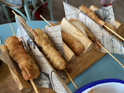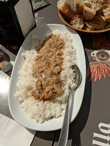 Read moreDía perruno en Caión, y nos decidimos por probar a ver si en este restaurante, de bastante fama en el pueblo, tenían un huequecillo para comer tres personas. Esperamos unos minutos y rápidamente nos prepararon una mesa. El local está situado al final de Paseo Marítimo de este precioso pueblecito costero, con fenomenales vistas al mar. Tiene una terraza con unas cuantas mesas, y un interior chiquitín, con mesas súper pequeñas bastante cerca unas de otras. Carta cortita, con poca presencia de pescados y mariscos, pese a estar en una localidad de costa. Digamos que es una carta “juvenil”, enfocada directamente a tapas y raciones. Nosotros pedimos langostinos crujientes, lenguas de pollo, mix de croquetas y una tapa de tortilla, de la que habíamos oídos hablar. Todo muy rico y muy abundante. Una pena que no tuviesen las tortillas de camarones, que también hubiésemos probado. No nos gustó que, contra toda lógica para una mesa tan minúscula, trajesen todos los platos a la vez. Opciones de postres reducida, de los que probamos las cañitas. Sin más, un pelín secas y con menos crema de la que nos hubiese gustado. Con 5 consumiciones, chupito de licor café y café con leche, la cuenta ascendió a casi 56€, en torno a 19€ por persona. Si bien no fue una comida memorable, sí está bien si quieres comer platos con 0 riesgo, bien ejecutados y por un precio...