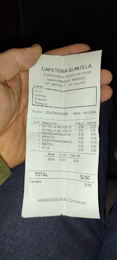 Las habilidades sociales y la actitud se pueden trabajar, aunque el dueño del Quintela no le interesa dar un trato agradable y cordial. Me sabe mal porque siempre he comido y se come muy bien, pero hoy después de 30 minutos esperando a que te digan y expliquen algo de una manera asertiva, y te atiendan con menos prepotencia, hemos decidido marcharnos. Gracias a la cordialidad de la camarera, de la que se desprenda una atención mucha más agradable que la de su jefe. Recomendación: buen sitio para comer, eso si paciencia, y si vas con niñ@s, busca otro sitio cuando hay mucha gente, porque...