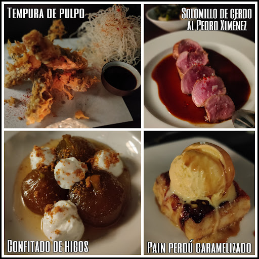 Read moreDomingo 1Nov/2021 celebrando Samain con mi esposa decidimos reservar en este restaurante de comida tradicional + fusión, y nos ha encantado desde la decoración y música de fondo muy acogedoras, hasta el momento de probar el vino albariño Saras de Adega "Entre os Ríos" y los platos: de primero y para compartir solomillo de cerdo ibérico al Pedro Ximénez con guarnición, el cerdo era mantequilla suave en boca y el sabor espectacular. Tempura de pulpo con nido de arroz y salsa de soja aparte para mojar, inmejorable, el pulpo tierno, en su punto, con una tempura crujiente y sabrosa. Para rematar los postres: Pain perdú caramelizado para ella e Higos confitados con espuma de yogur para mí..todo increíble y exquisito de principio a fin. Como conclusión es un lugar recomendable 100%, servicio estupendo y precio por supuesto que acorde a lo disfrutado. Nos vamos muy contentos y con...