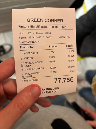 Read moreIf you go here do NOT expect any kind of greek expirience. This place should change it s name in The corner, nothing to do with greek cruisine. Mediocre meat, cooked poorly, taste poorly. We tried Beef and Chicken gyros..nothing to do with any gyros ever had, just a poor sliced meat with shaworma bread(not the greek one). The mixed grill we also had was very very bad...some slice of meat cooked very bad...nothing to do with the greek cruisine, even not expecting any greek mixed grill, was very very bad. I sugest to not eat here.. only good dish we had was the fries.. oh, instead of tzaziki we recied some mayo...