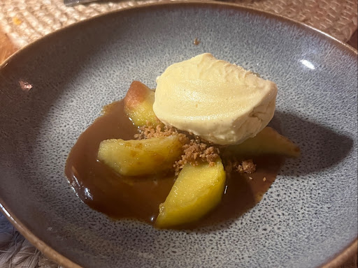 Welcome and service were very good. Restaurant is lovely we were seated at a table with my husband placed right under the music speaker, after a few minutes of being seated, the music was turned up so loud it was off putting when trying to have a conversation. At this point we were the only people in the restaurant!. We had been booked in by the customer experience person from baobab suites where we were staying, she insisted that they would cater to our tastes and that the food was excellent and they had a new menu starting that evening. The menu definitely wasn't new it was the same as when we had looked months before. They did have a special menu on showing FISH AND CHIPS which my husband ordered expressing that he only wanted the fish and chips on his plate nothing else including garnish which the waitress understood. I initially was going for the scallops off the same menu but the waitress said they had a special of seabass with canarian potatoes, which I ordered. We ordered water and soft drinks, and were presented with a free nibble which I tried it was all very soft and not appetising. The main course's arrived at the bar area where the waitress and two other members of staff where hanging about, it took some time for when the food was eventually presented we were shocked by what was on our plates, my seabass was surrounded by a pool of brown sludge which was so off putting i didn't touching, the seabass fortunately was balanced on warm cucumber and a few chunks of potato the seabass was lovely however I didn't touch anything else on the plate. The FISH AND CHIPS was 4 small pieces if fish with a soggy batter surrounded by an orange puree and had something brown sprinkled over the fish and plate, my husband complained to the waitress that he asked for nothing else to be on the plate, she took it away, and we waited thinking they were probably doing the dish again I started on my dinner, but 5 minutes later my husband was presented with the same pieces of fish wiped down and on a new plate , what we hadn't seen initially was that the fish was being served not with CHIPS (as advertised) it was actually served with CRISPS soggy ones at that. I did order the chocolate desert which was lovely. €75 euro to be presented with fish and crisps, seabass and brown sludge is definitely not what we expected and hav3 had much better food in other restaurants down the hill in town than what this restaurant served. We definitely wouldn't return or recommend, and I don't think the staff at the Baobab Suites should be recommending the...
