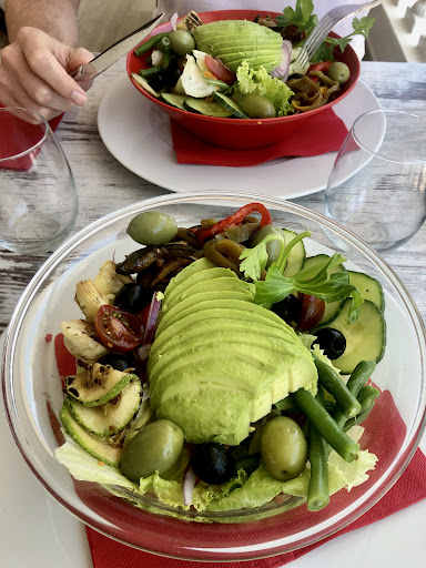 When we arrived we explained that we were vegan and looking for somewhere that could accommodate, the chef was very quick to explain that he could do us some big plates of grilled vegetables, pasta, rice, salad and Canarian potatoes. While this sounded delicious and incredibly awesome of him, we have both been craving a big salad (seemingly impossible to get where we’re staying).
