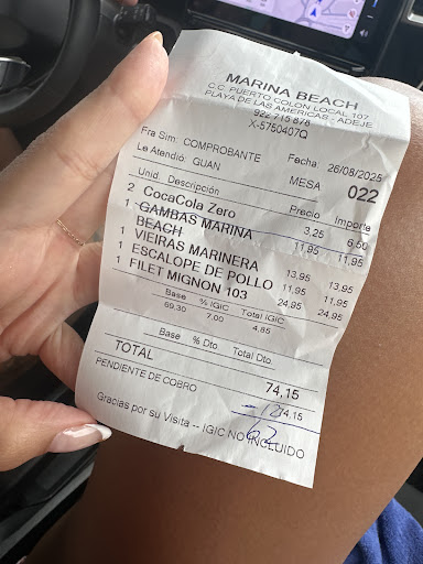 Considered eating here and we were cornered by the street vendor outside the entrance who was working to entice customers to dine in. Listened to her pitch with genuine interest as we had intentions to go in. We are a family of four with two young hungry boys who were looking to dine out for the evening. However this lady bent down to our youngest son and produced a lolly pop from her pocket. She asked my son if he’d like a lolly, to which he obviously replied yes, as he's 4. What 4 year old doesn’t want a lolly while on holiday.. She then snatched it back and proclaimed that only good boys who eat in the restaurant get a lolly. You can imagine the obvious disappointment this caused. This was a sly move, deliberately pulled to cause disappointed children so the parents feel pressured to eat there just to please the kids. Fortunately for us our boys are both reasonable and it didn’t produce the desired affect for her. We are next door instead. Same food, same menu. The staff went above and beyond for our children and when they had finished their meals they gave them ice cream decorated with sauce and sprinkles and as we left they then gave them two lollies each. Royal Beach next door is the place to go. Marina Beach would be better named...