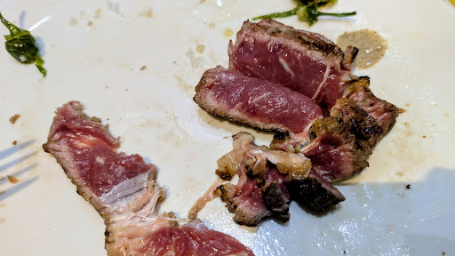 The second problem was I asked for my steak to be cooked ‘medium rare’, commonly accepted as red in the very centre, then pink towards the browned seared outer crust. As my photo shows, my steak was...