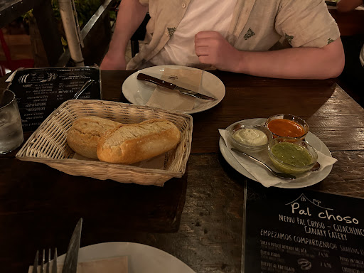 Moving on to the food, mi amor, portion wise? Magnificent. We ordered Pal Choso Special Salad, Grandmas Chickpeas and bread for starters. The caranians sauces just my god garlicky creamy slight sweer with a kick from the chilli. Its called red mojo. So so good. For mains, grilled chicken, veal steak and ribs for two. All of the meats is cooked on a open flame so it gets that charred smoky flavour with it.