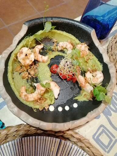 I should also mention that the serving plates and dishes are, in themselves, quite beautiful: colourful and individual, not mass made white china. This enhances the enjoyment of each dish.