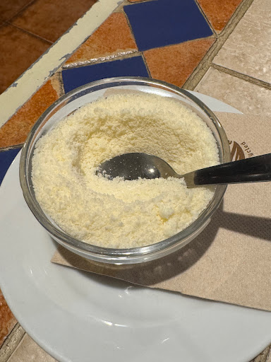 I was alarmed when the cutlery was brought along with a saucer with 'packets' of oil and packets of vinegar (see picture). This meant that they had not bothered to make any fresh dressing.. really poor. To compound matters, we were brought a bowl of powdered parmesan - the heavily processed type (see picture).