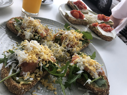 The menu offers a delightful array of breakfast options, and we opted for the banana on toast with a pistachio base and white chocolate drizzle, and the acai bowl.
