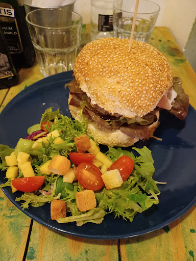 Read moreA fantastic place to grab a delicious burger or salad. Really cool interior design (tables made out of wooden pallets, funky picture), lovely and friendly staff and super duper selection of burgers, salads and more. We had "green risk" salad, Iberian and Herreña burgers - and we got stuffed to the brim. There were some puzzles available to keep our little one entertained while waiting...