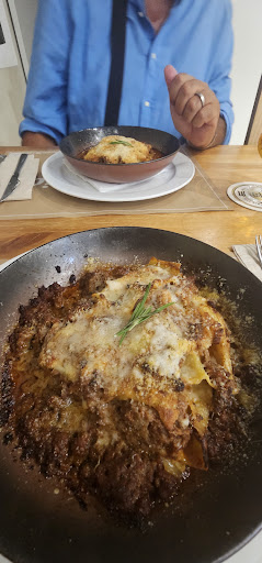 Cenamos en este restaurante/pizzería por segunda vez. Debo decir que hacía mucho que no comía tan bien. Buena calidad de ingredientes, buen servicio, amabilidad, limpieza; en resumen, fue una experiencia magnífica y los precios también son muy justos. Probamos la pizza frita, muy buena y ligera; dos lasañas horneadas, buenísimas; dos postres, un tiramisú y uno de pistacho; dos cafés y dos cervezas. Gastamos 2 personas (53 €). Totalmente recomendable y estaremos encantados de volver.