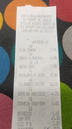 Personally I did not particularly like the canary stew or fish soup. However my partner liked her grilled sardines, and my fried breaded fish was acceptable.