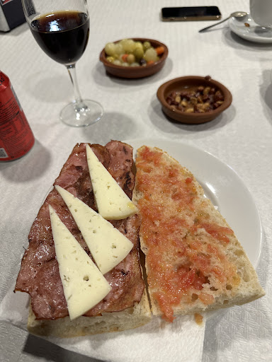 Read moreFuimos a comer un sábado y muy mal por ese precio Menú fin de semana (19€ sin bebida )que incluye tres entrantes para compartir , un plato a elegir y surtido de postres "caseros" Un entrante era una simple patatita asada con ajonesa de bote , otro una mini ración de un plato típico de el pueblo y por último una ensaladita con tomate ,lechuga, atún, olivas y cebolla crunchi De plato pedimos caldereta de jabalí que aunque con muy buena presentación , le faltaba chispa y sustancia Y para rematar, un postre para compartir con dos mini mini trocitos de sandía , un trocito de tiramisú industrial ,un trocito de flan y dos pegotes de nata industrial también por supuesto Lo mejor el café y la atención , pero por ese precio y con esos entrantes y ese postre no...