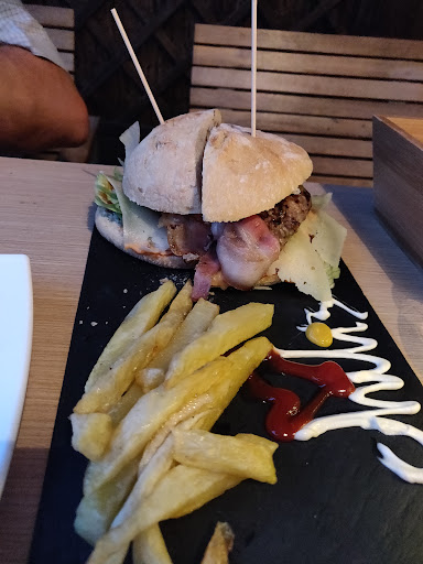 Read moreMuchos fallos para mi gusto en la comida. Decir que la atención del camarero fue muy buena, ahí sin problema, muy atento y simpático. La comida sin duda no está a la altura para el precio que tiene. Las croquetas no estaban mal pero eran pequeñas y no parecían caseras (podían serlo pero por sabor y forma...). Sin sabor excepcional La ensalada de cabra de sabor buena, frutas, queso de cabra y lechuga, buena combinación, pero bastante escasa. Para mi gusto es preferible dos trozos de queso y algo más de fundamento por ejemplo. El pulpo bastante malo, las patatas es un básico en un plato así y estaban fatal. El pulpo de cocción bien pero tenía poco aceite y no tenía sal gorda. La hamburgesa aquí bastante bien. Buen sabor, buena carne y bien de tamaño, aquí nada que objetar, quizá podrían mejorar las patatas. Decir que como compensación del pulpo se nos puso un trozo de tarta que estaba bueno, de whisky y muy suave. Yo no volvería con esta primera vez pero quizás volviendo una segunda mejorase... El local si es amable en decoración y ambiente,...