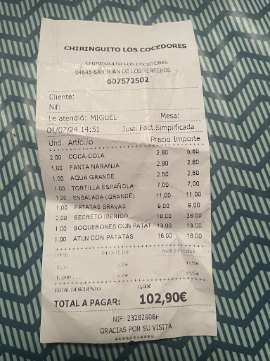 Read moreUnser Besuch im Chiringuito Los Cocedores war leider eine grosse Enttäuschung. Trotz der schönen Lage direkt am Strand konnte uns die Küche überhaupt nicht überzeugen. Die Gerichte waren lieblos zubereitet und kamen Kalt und halb Roh serviert.