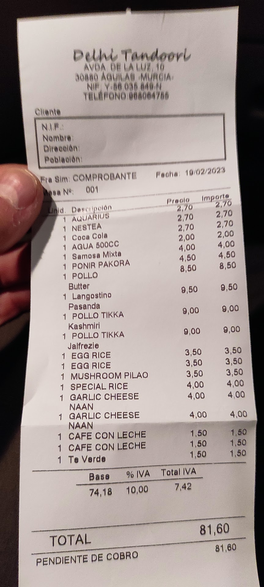 Read moreAnte todo he de decir que el servicio y el trato del personal fue excelente y correcto. Conozco muy bien la cocina India y en esta ocasión diría que la han intentado europeizar mucho para que a los paladares Españoles les resulte más agradable, sin embargo de los 4 platos principales que pedimos solo uno de ellos cubría nuestras expectativas, los demás eran muy insípidos y las raciones increíblemente escasas para costar 9 euros y eso sin la salsa , que te la cobran a parte y eso sin el arroz de acompañamiento que te lo cobran a parte y eso sin el pan que te lo cobran a parte ... 4 personas comimos poco y sin mucho placer no tomamos postres no repetimos bebida ni pedimos vino ni extras ... 80 y pico euros ... No se cómo lo verán ustedes pero con ánimo de crítica constructiva, bajense de la parra por dios . Si lo sé me preparo una mariscada y me pongo morado a gambon rojo... Me parece súper indignante que se paguen estos precios por un puñado de arroz y literalmente 4 trocitos de pollo insignificantes en una cazuelita super pequeña. Me sabe mal dejarles esta reseña por qué fueron muy amables pero jamás volveré a este lugar, ni por la calidad de su comida , ni por las raciones , ni por el sabor e indudablemente ni por sus precios. Ojala sean capaces de cambiar y mejorar para ofrecer algo mejor... me da que lo van a necesitar ....