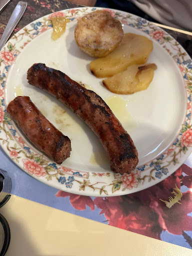 Pedí una longaniza a la brasa que no solo era buena de sabor y calidad, sino que estaba bien cocinada en la brasa. Ninguna queja sobre ella. Les pedí que me cambiaran la guarnición, y sin problema ninguno.
