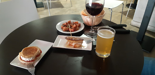 Muy caro, una caña de cerveza, Cocacola y una patata rellena de carne ...que no tenía apenas carne . Todo por 8.95€ en la terraza, cuando el único servicio que hicieron es traernos la cuenta a la mesa. Una y no más, me parece un robo...y la chica que nos atendió de coleta y rubia, no se enteraba de la...