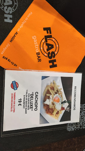Read moreHoy hemos parado a comer. Por pura casualidad. Estábamos de paso de Zaragoza a Gasteiz y como intentamos evitar los restops, decidimos salirnos de la autopista y probar suerte en el primer pueblo por el que pasásemos. Alagon, en este caso. Hemos ido hacia la plaza del pueblo y hemos entrado en el primero que hemos visto. Era el Flash Gastro Bar. Aun estando concurrido, la chica de la barra nos ha atendido muy amablemente. Tras consultar con el comedor, nos han preparado una mesa, recién librada, para los cuatro que íbamos. El chico que nos ha atendido, muy atento y servicial. Reseñar las buenas caras, la atención y la predisposición por parte de todo el equipo del Flash. Hemos comido para compartir entre todos: Ensalada de tomate rosa Verduritas salteadas Setas a la plancha con foie Dos cachopos. Bolitas de leche frita como postre. Todo muy...