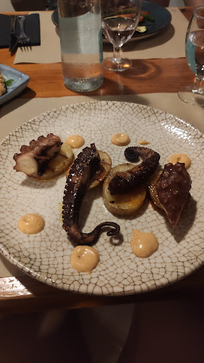 Amazing food, meats and fishes were grilled on the charcoal and you could see and taste that were just fresh ingredients on the plate. I went there sometimes during my stay in Alaró. I tried the Corvina Fish was delicious just left bones and also Entrecot ( beef ) right medium as i asked him taste salada with tomatoes and fresh basil. Fresh Octopus, and lovely desserts i tried ( banofe - tiramissu - ) high standard. Staff was very frienldy and supportive. To be honest i could eat...